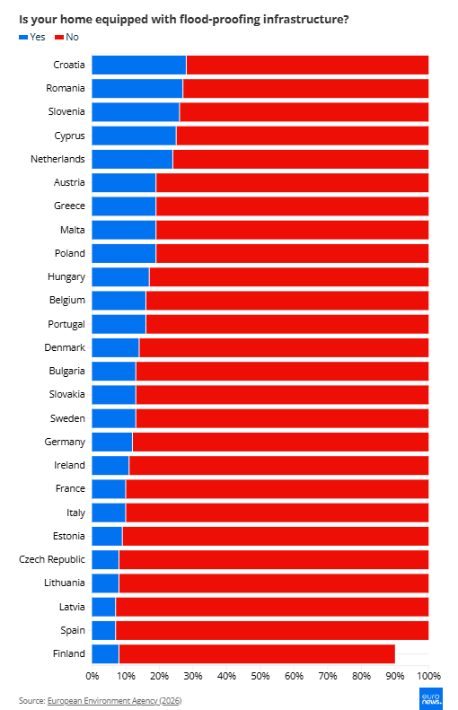 Ενώ οι Ευρωπαίοι λαμβάνουν μέτρα για να ασφαλιστούν οικονομικά, το ίδιο δεν μπορεί να ειπωθεί για τα μέτρα φυσικής προστασίας των ακινήτων τους από τις πλημμύρες.