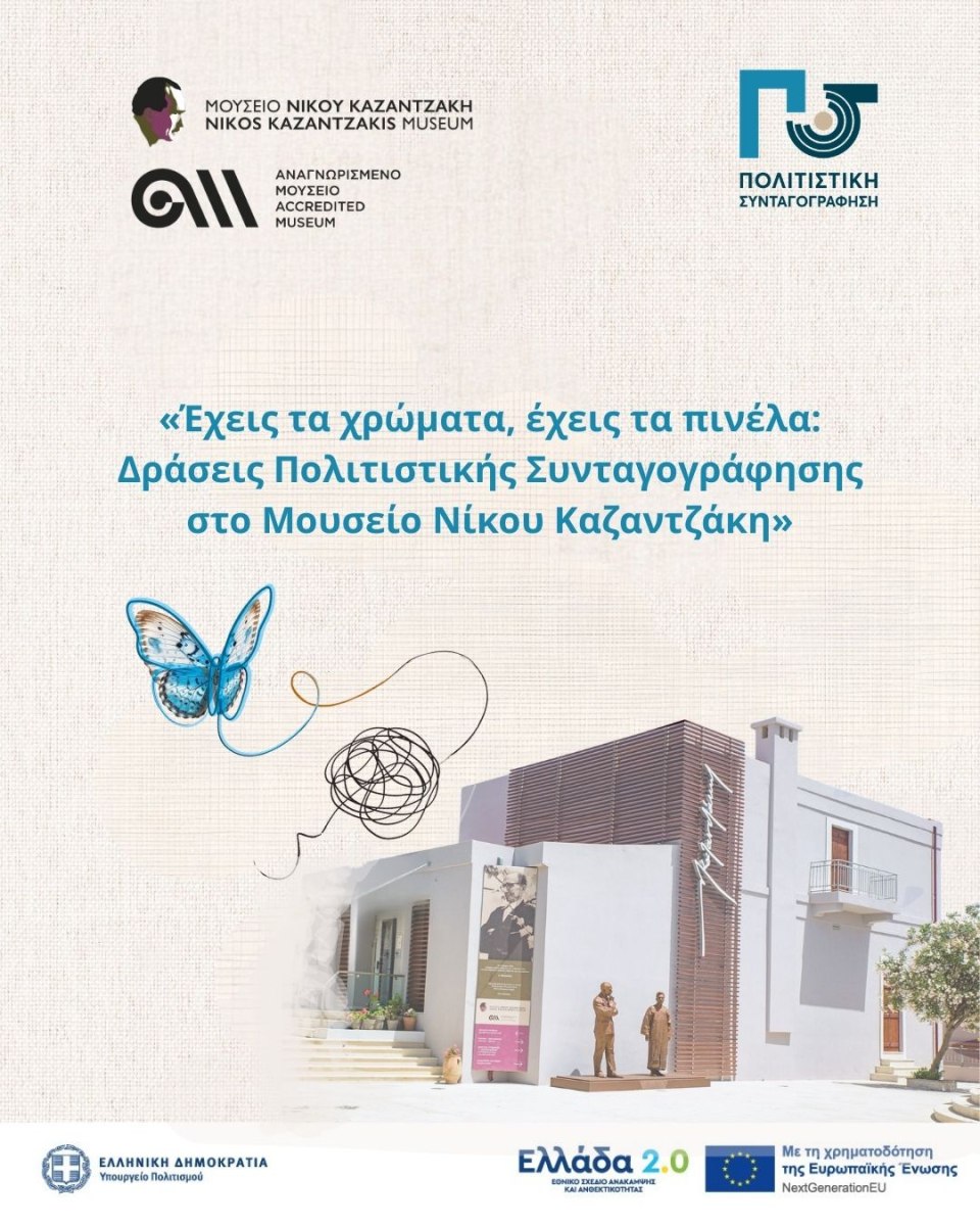 Το Μουσείο Νίκου Καζαντζάκη υλοποιεί έναν κύκλο βιωματικών καλλιτεχνικών εργαστηρίων με τίτλο «Έχεις τα χρώματα, έχεις τα πινέλα: Δράσεις Πολιτιστικής Συνταγογράφησης στο Μουσείο Νίκου Καζαντζάκη»