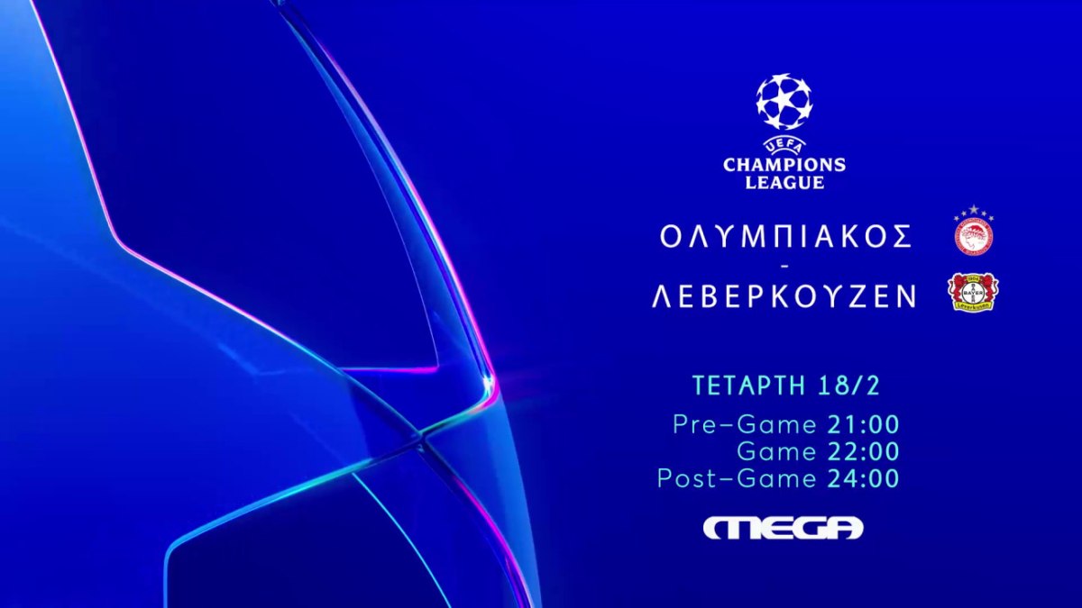 Την Τετάρτη 18 Φεβρουαρίου, το MEGA φέρνει στις μικρές οθόνης την πρώτη αναμέτρηση του Ολυμπιακού με τη Λεβερκούζεν, στο πλαίσιο των νοκ άουτ του UEFA Champions League.