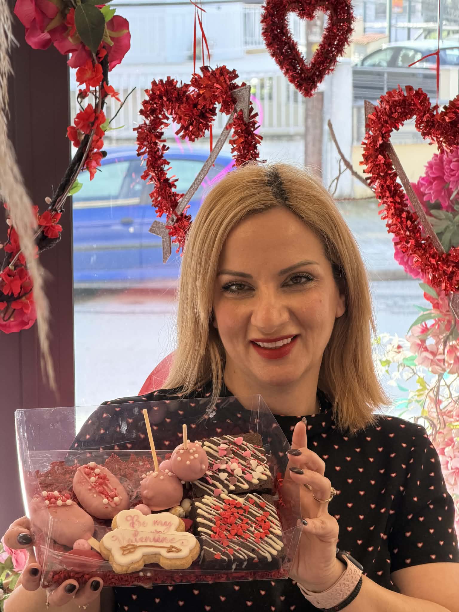 «Είναι ένα κουτί που περιλαμβάνει δύο κομμάτια σουφλέ σοκολάτας με sprinkle καρδούλες, δύο cakesicles γεμιστά με σοκολάτα, δύο cake pops σοκολατένια μπαλάκια που λιώνουν στο στόμα, χειροποίητα χείλη από κόκκινη σοκολάτα και βουτυράτο cookie “Be my Valentine”. Έχουμε επιλέξει ό,τι πιο κοντά στο πνεύμα του Αγίου Βαλεντίνου. Άλλωστε, τα γλυκά από μόνα τους είναι αυτά που έχουν μια …ερωτική σχέση για τους περισσότερους», τόνισε στο ΑΠΕ – ΜΠΕ η Πέπη Μπέζα.