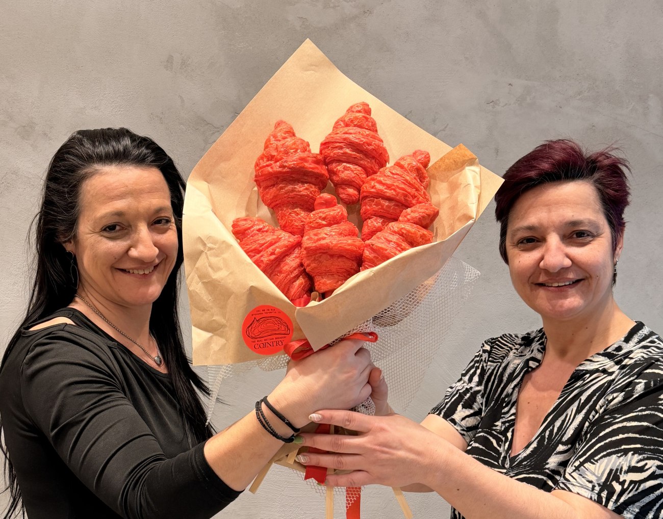 Δεν διατηρούν ανθοπωλείο αλλά φούρνο -και στις δικές τους ανθοδέσμες δεν πρωταγωνιστεί το τριαντάφυλλο, αλλά κατακόκκινα κρουασάν σε ένα βρώσιμο μπουκέτο. Για τους λάτρεις της συγκεκριμένης ζύμης, αυτή η «ανθοδέσμη» μυρίζει βούτυρο, δεν μπαίνει σε βάζο αλλά σε πιάτο ή στο χέρι- και κατευθείαν στο… στομάχι.