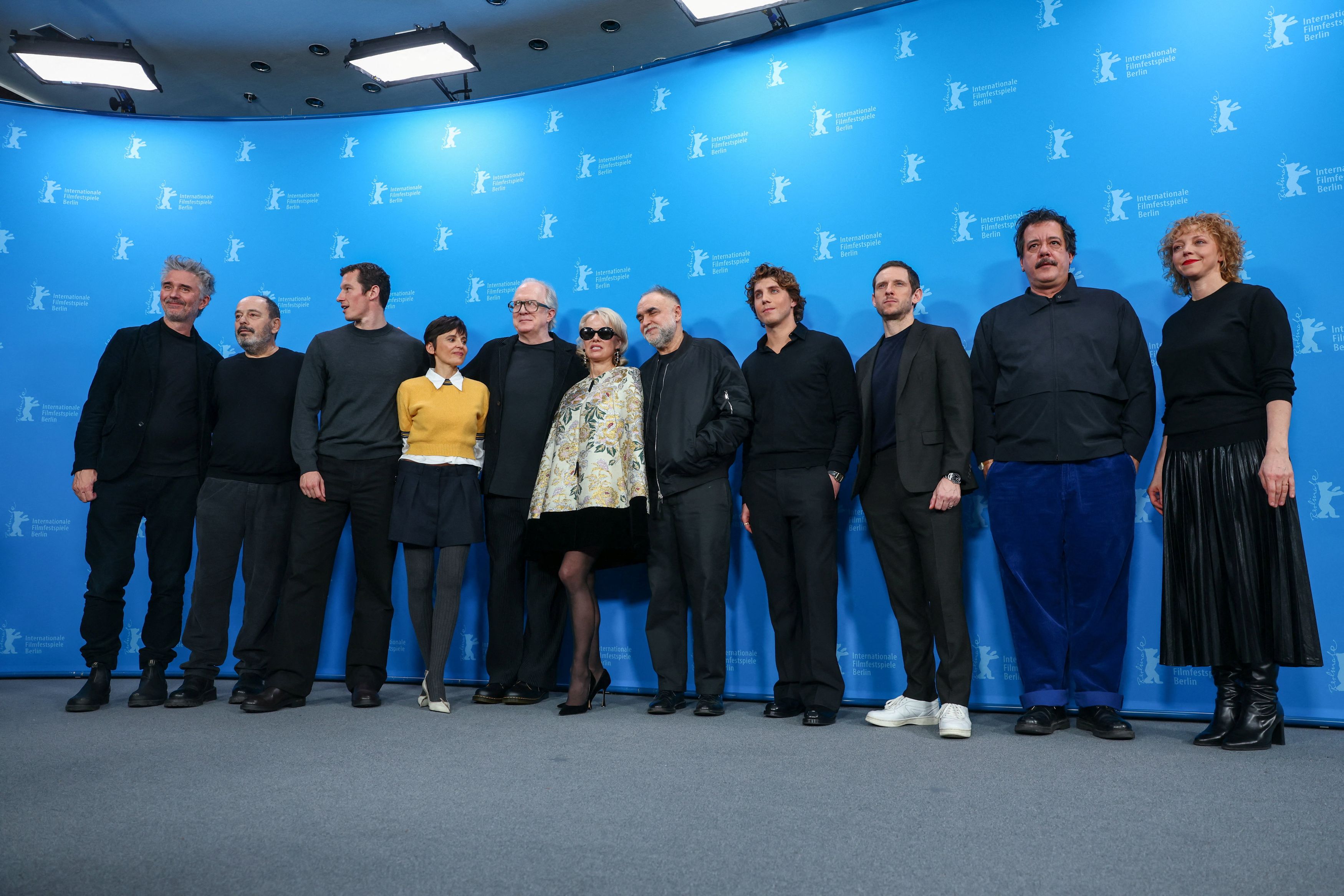 Φωτογραφία: Ο σκηνοθέτης Καρίμ Αϊνούζ, ο σεναριογράφος Ευθύμης Φιλίππου, η παραγωγός Βιόλα Φούγκεν και οι ηθοποιοί Κάλουμ Τέρνερ, Έλενα Ανάγια, Τρέισι Λέτς, Πάμελα Άντερσον, Λούκας Γκέιτζ και Τζέιμι Μπελ, μεταξύ άλλων, ποζάρουν κατά τη διάρκεια φωτογράφησης για την προώθηση της ταινίας «Rosebush Pruning» στο 76ο Διεθνές Φεστιβάλ Κινηματογράφου της Βερολίνου, στη Γερμανία, στις 14 Φεβρουαρίου 2026. REUTERS/Christian Mang