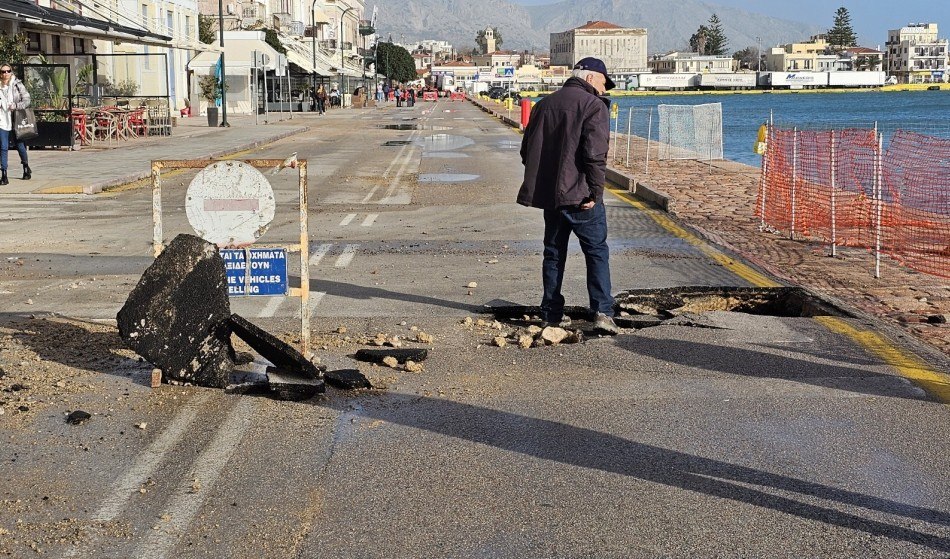 Στη Φοινικούντα καταστροφές στο παραλιακό μέτωπο από τη θάλασσα που βγήκε στην ακτή.