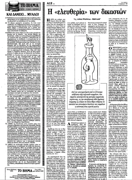 Από το κείμενό της αυτό (τίτλος του, Η «ελευθερία των δικαστών»), το παλιό πλέον αλλά πάντα επίκαιρο, προέρχεται το ακόλουθο απόσπασμα: