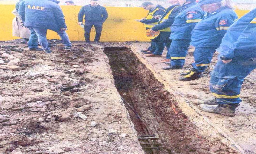Οι αξιωματικοί της ΔΑΕΕ πραγματοποίησαν εργασίες εκσκαφής για να εντοπίσουν το δίκτυο των σωληνώσεων που τροφοδοτούσαν με αέριο το κτίριο 2 του εργοστασίου της Βιολάντα, που καταστράφηκε ολοσχερώς.