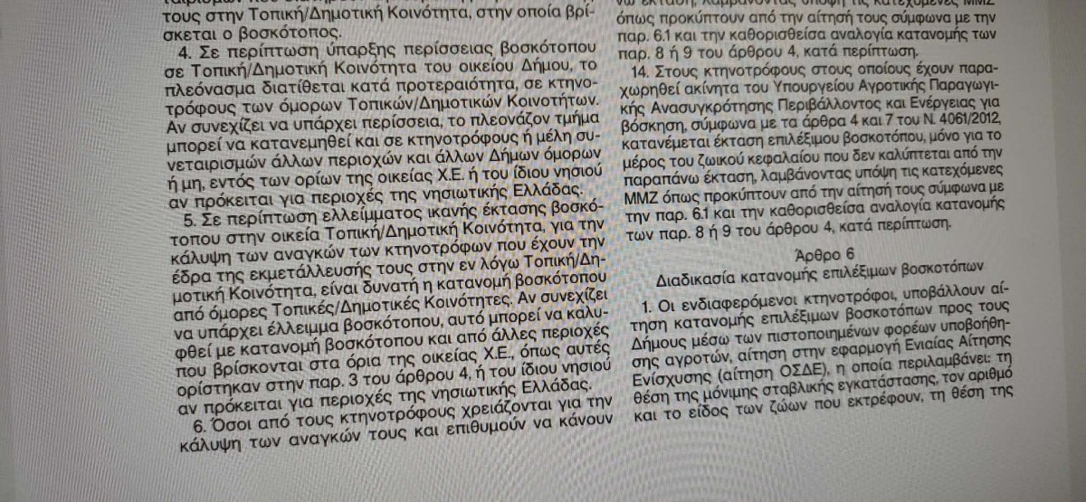 Ότι τα βοσκοτοπικά δικαιώματα εκτός περιφερειακής ενότητας δεν ήταν με «κριτήριο ζωοτροφών», αλλά με «φορολογικά δεδομένα».