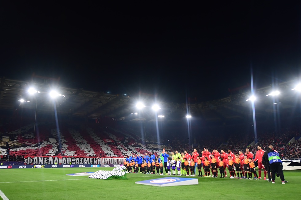 Η ομάδα του Χοσέ Λουίς Μεντιλίμπαρ έχει ξανά τον 12ο παίκτη στο πλάι της, με τον φίλαθλο κόσμο της ελληνικής ομάδας να έχει κατακλύσει το γήπεδο και να έχει δημιουργήσει μία υπέροχη ατμόσφαιρα. Με φωνή, συνθήματα, παλμό. Από νωρίς. Με ένα κορεό που μόνο στο «Γ. Καραϊσκάκης» βλέπει κάποιος: «Φανέλα δοξασμένη μόνο εσύ φοράς», αναφέρει το κορεό των οργανωμένων οπαδών του πειραϊκού συλλόγου.