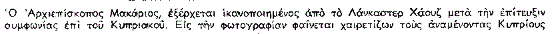 Τελικά, παρά τους δισταγμούς που είχε, ο Μακάριος υπέγραψε τις συμφωνίες για την ανεξάρτητη Δημοκρατία της Κύπρου.