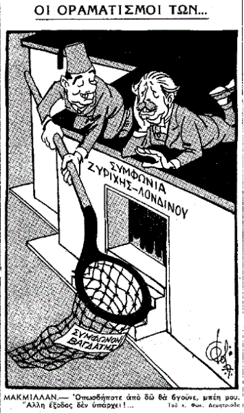 Φαίνεται ότι μας αιχμαλώτισε σαν επίσημο κράτος μια σοβαρή παρεξήγησις — μια παρεξήγησις τραγική θα ελέγαμε. Πανηγυρίζομε για τον θρίαμβο της κυπριακής μας πολιτικής, ενώ θα έπρεπε να αναγνωρίσωμε την πραγματικότητα με ευθύτητα και ειλικρίνεια και να διακηρύξωμε ότι αυτό που έγινε ήταν μεν ένας οδυνηρός ενταφιασμός ιερών δικαίων και ονείρων, αλλά ταυτόχρονα κάτι που δεν μπορούσε να αποφευχθή όπως είχαν τα πράγματα. Δεν σταματάμε όμως εδώ. Αγγέλλομε με περισσή αυταρέσκεια, σαν να επιστρέψαμε με ένδοξα τρόπαια από πεδίο μαχών, ότι, τώρα που ετελειώσαμε με την Κύπρο, μπορούμε να αναπτύξωμε καρποφόρες πρωτοβουλίες στο πλευρό των μεγάλων φίλων και συμμάχων μας που μας εγονάτισαν σε κρίσιμη ώρα αγώνος. Και βλέπομε να δημοσιεύωνται οι πρώτες ειδήσεις περί αντιμετωπιζομένης ενεργού συμμετοχής της Ελλάδος στα συμβαίνοντα στην Μέση Ανατολή στο πλευρό της Τουρκίας, που επάτησε το πόδι της στο νησί της Αφροδίτης. Ο αναγνώστης των «Νέων» θα επρόσεξε τις πρώτες πληροφορίες που κάνουν λόγο περί πιθανής εισόδου της Ελλάδος στο Σύμφωνο της Βαγδάτης (σ.σ. στρατιωτική συμμαχία κατά τη διάρκεια του Ψυχρού Πολέμου, συσταθείσα το 1955 από το Ηνωμένο Βασίλειο, την Τουρκία, το Ιράν, το Ιράκ και το Πακιστάν), αχρηστευμένου λόγω σηψαιμίας.