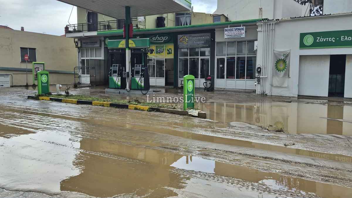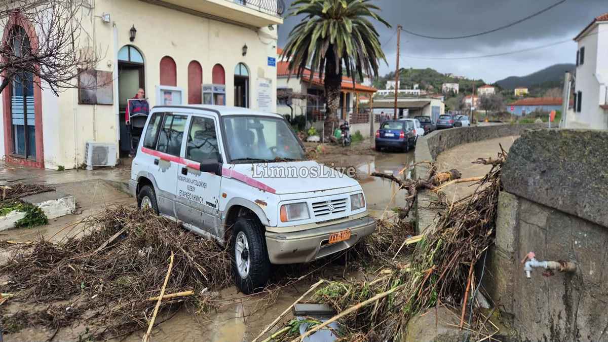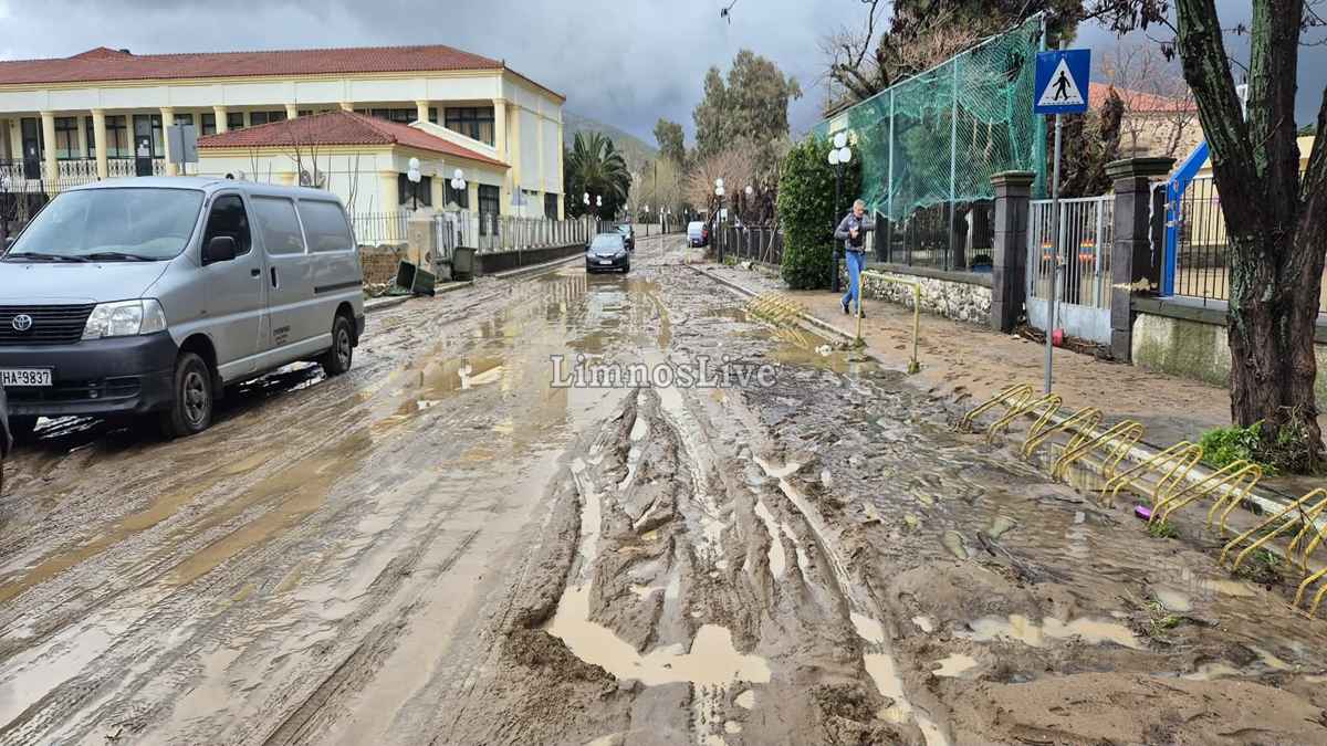 , αποθήκες και επαγγελματικοί χώροι, σπίτια, γέμισαν λάσπη, ενώ κάτοικοι προσπαθούσαν με κουβάδες και σκούπες να σώσουν ό,τι μπορούσε να σωθεί από την κακοκαιρία που σάρωσε τη Λήμνο