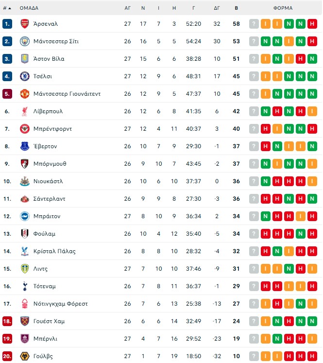 Το πρόγραμμα και τα αποτελέσματα της 27ης αγωνιστικής: