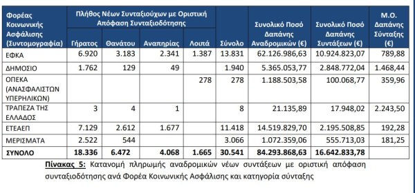 Τον Ιανουάριο πληρώθηκαν 2.899.085 κύριες συντάξεις, με συνολική δαπάνη σχεδόν 2,51 δισ. ευρώ και μέση δαπάνη ανά κύρια σύνταξη 865,58 ευρώ.
