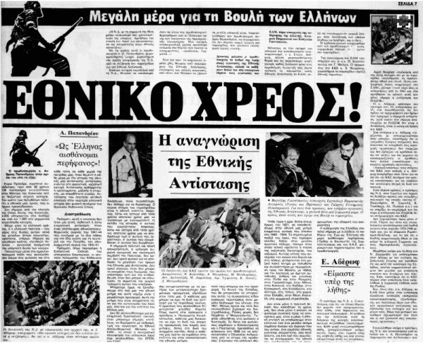 Μερίδα του Τύπου το 1982 καλωσορίζει την αναγνώριση της Εθνικής Αντίστασης.
