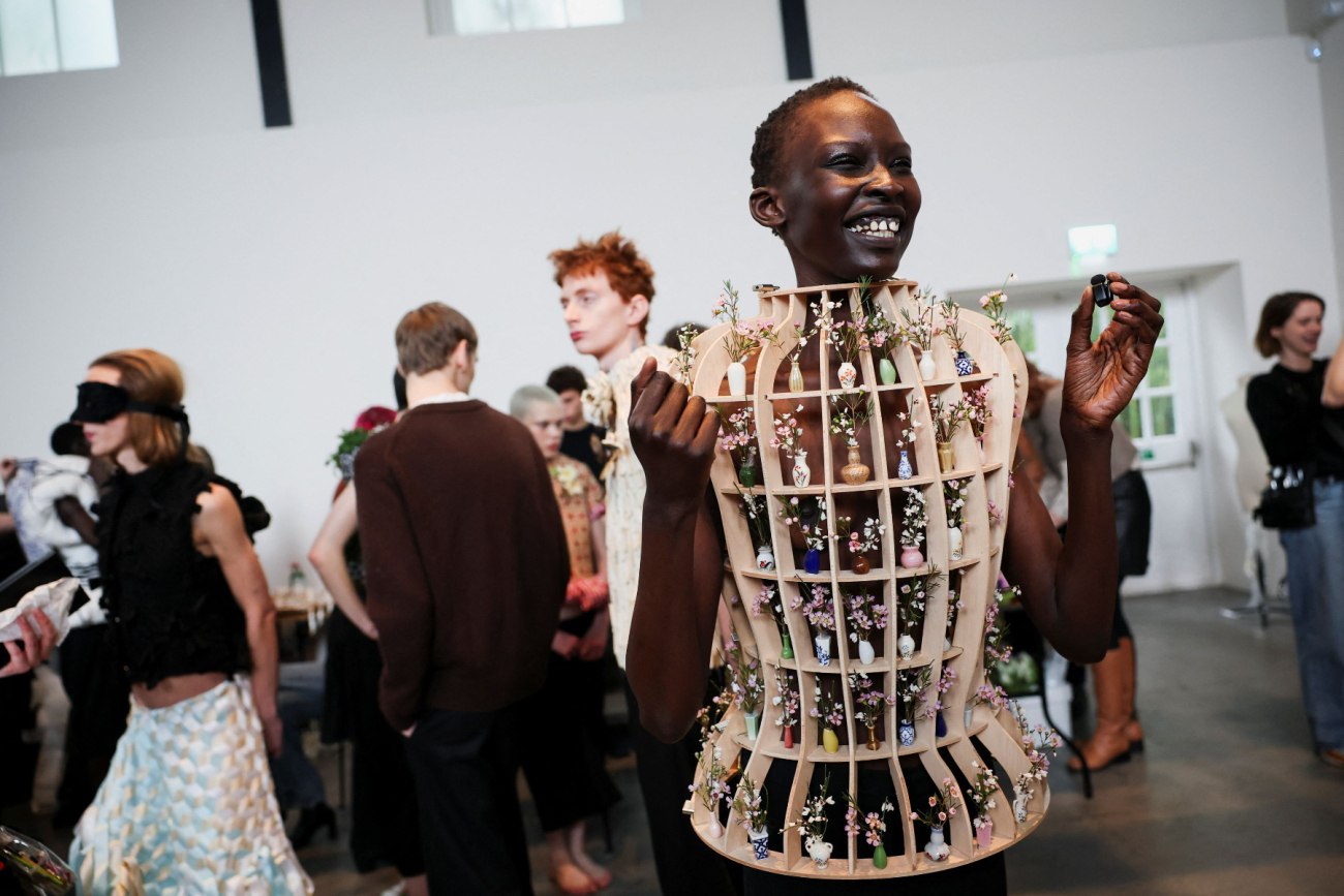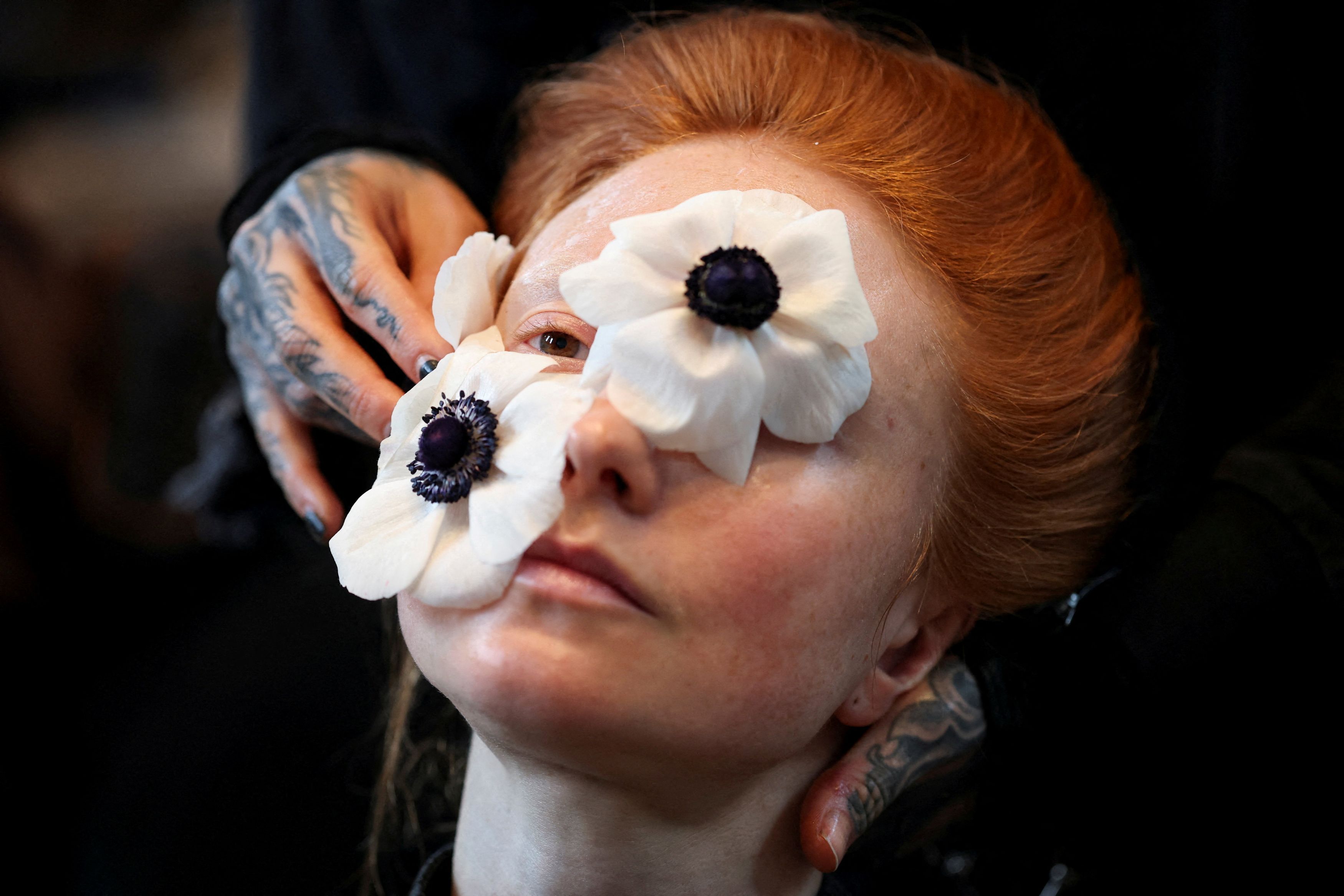Μοντέλο backstage στο THEVXLLEY show της συλλογής «The Narcissist», στην Εβδομάδα Μόδας του Λονδίνου REUTERS/Isabel Infantes