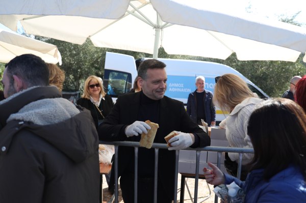 Στο γλέντι που έχει στήσει ο Δήμος Αθηναίων, προσφέρονται, λαγάνα, φασολάδα και άλλα παραδοσιακά σαρακοστιανά εδέσματα υπό τους ήχους νησιώτικων τραγουδιών.