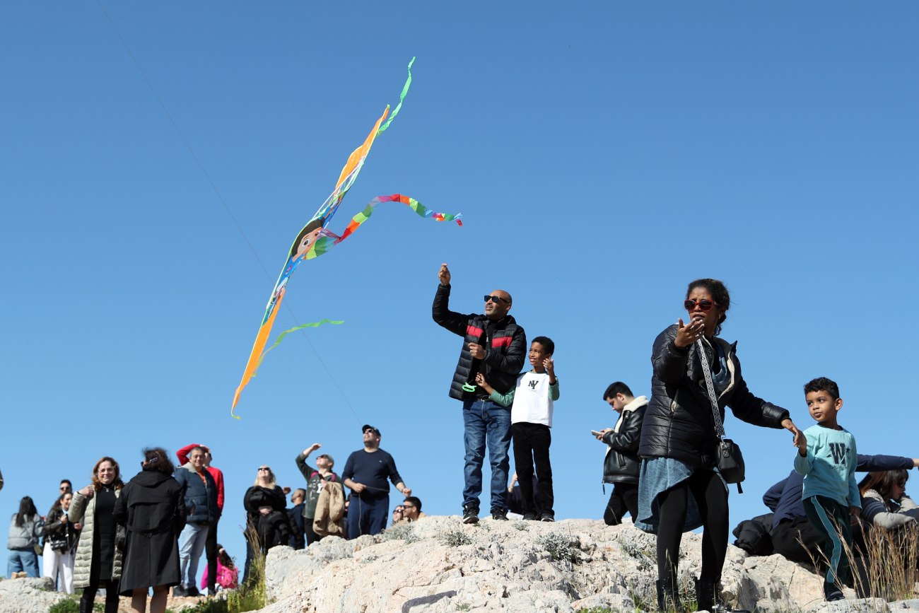Μικροί και μεγάλοι ανέβηκαν στο λόφο του Φιλοπάππου για το παραδοσιακό πέταγμα του χαρταετού.