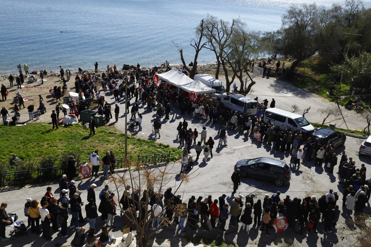 Οι άνθρωποι από την ΠΑΕ Ολυμπιακός μοίρασαν στον κόσμο εκλεκτά εδέσματα όπως λαγάνα, φασολάδα και ταραμοσαλάτα.