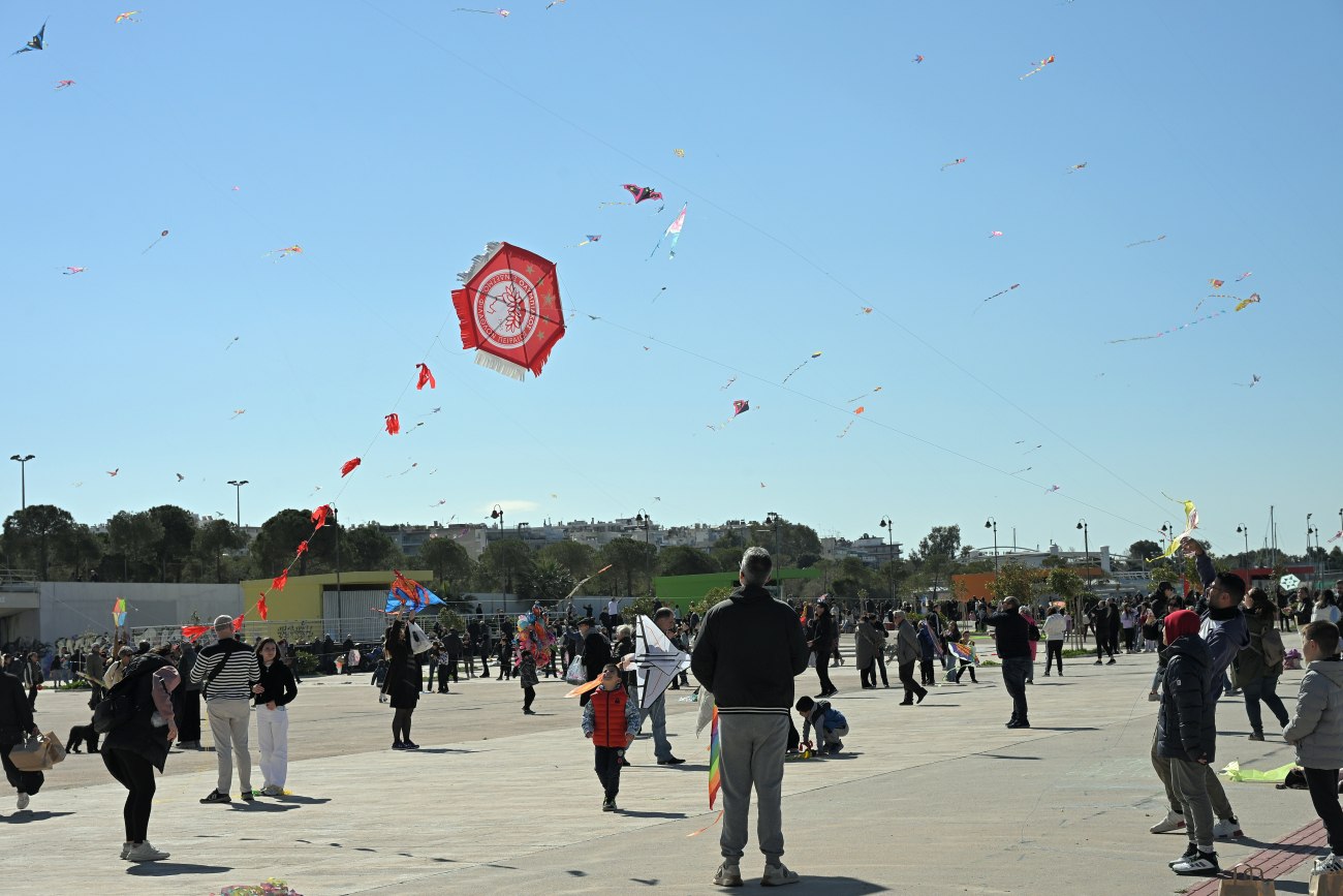 Με τον ουρανό του Πειραιά να γεμίζει από τους ερυθρόλευκους χαρταετούς, άνθρωποι όλων των ηλικιών διασκέδασαν υπό τους ήχους παραδοσιακών τραγουδιών.
