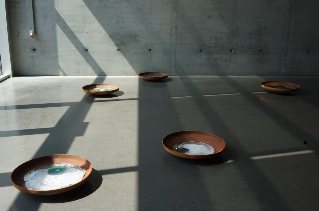Rosella Biscotti, Stranded, 2021. Σειρά γυάλινων γλυπτών τοποθετημένων μέσα σε σκουριασμένα μεταλλικά μπολ. Μεταβλητές διαστάσεις. Ευγενική παραχώρηση της καλλιτέχνιδας και της γκαλερί mor charpentier.