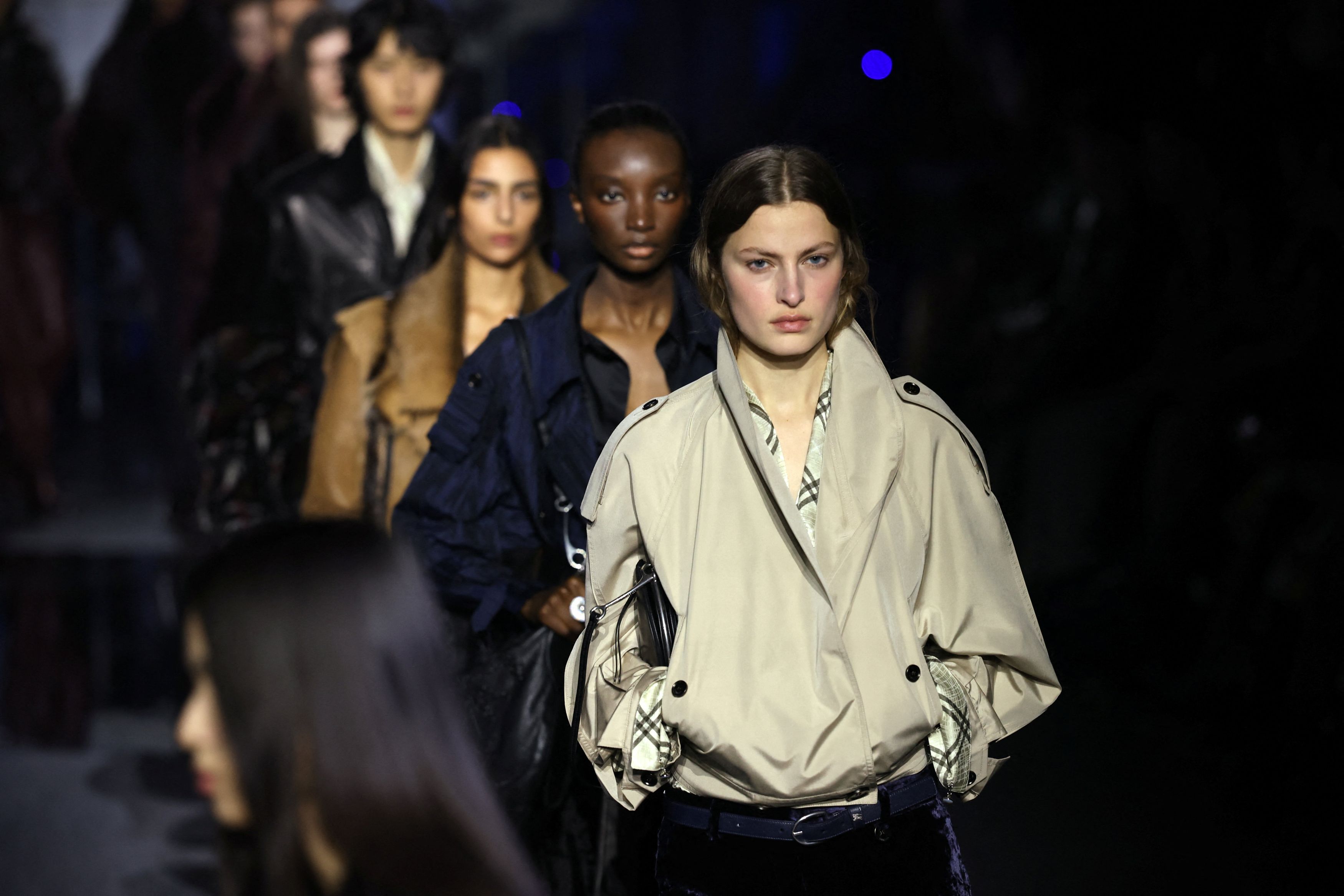 Τα trenchcoats και τα bomber jackets του σχεδιαστή Daniel Lee της Burberry ξεχειλίζουν από την ενέργεια της πόλης σε μια νέα συλλογή που αγκαλιάζει τις κακές καιρικές συνθήκες κι αντιμετωπίζει τις οικονομικές αναπροσαρμογές του οίκου μετά τις 1.700 περικοπές θέσεων εργασίας.