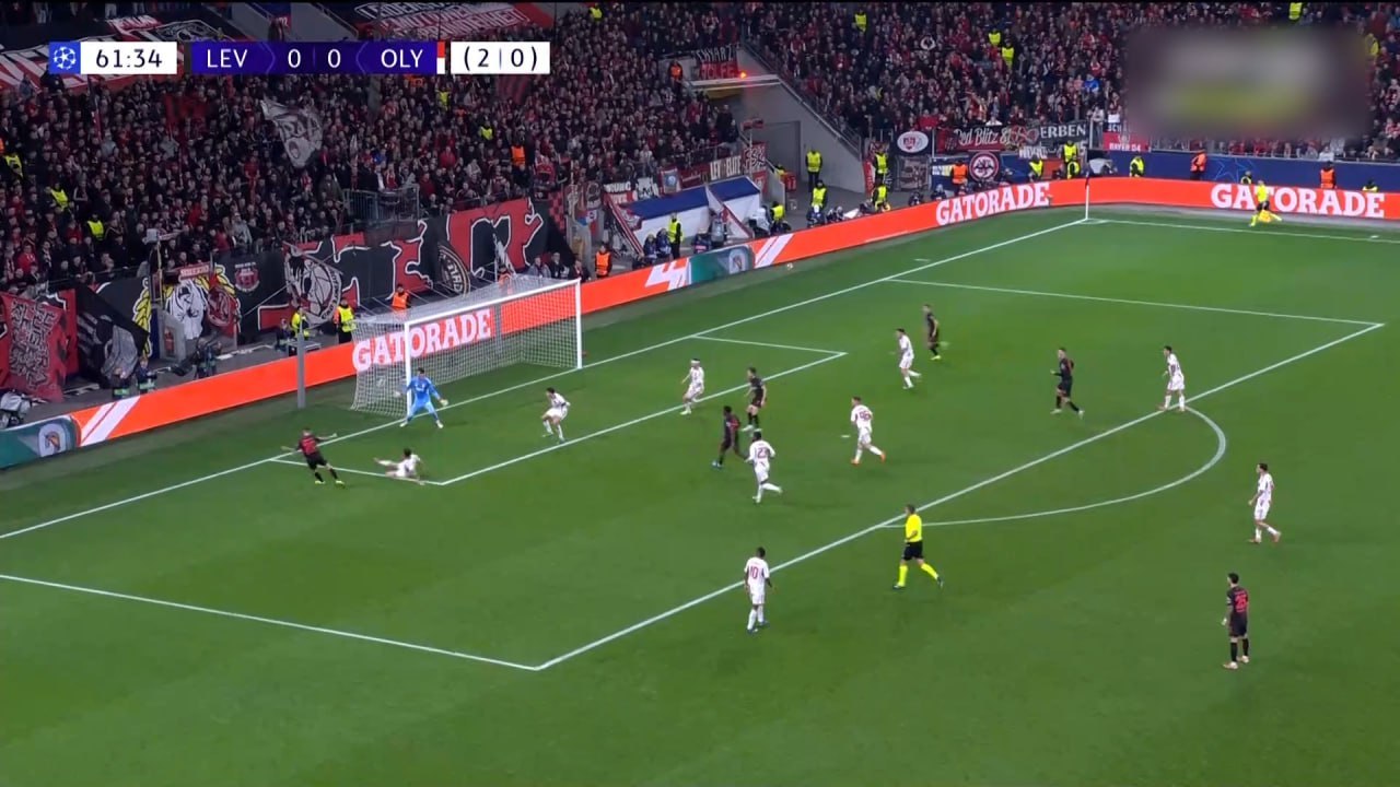 Η Λεβερκούζεν είχε σημαντική ευκαιρία στο 62′, με τον Γκριμάλντο ν’ απειλεί την εστία των πειραιωτών.