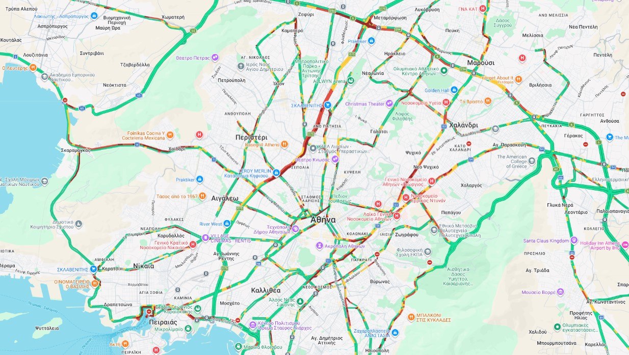 Κίνηση: Στο «κόκκινο» κεντρικοί δρόμοι στην Αττική – Πού εντοπίζονται αυξημένα προβλήματα και καθυστερήσεις
