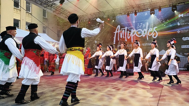 Η κοινότητα διοργανώνει δύο μεγάλα φεστιβάλ ετησίως. Το Φεστιβάλ Αντίποδες, που πραγματοποιείται εδώ και σχεδόν 40 χρόνια, προσελκύει πάνω από 100.000 επισκέπτες σε ένα Σαββατοκύριακο: «Κλείνουμε τους δρόμους, φέρνουμε καλλιτέχνες από την Ελλάδα – έχει έρθει και ο Νταλάρας, και η Χάρις Αλεξίου, και η Πρωτοψάλτη. Υπάρχουν περίπτερα με φαγητό – λουκουμάδες, σουβλάκια –, αδελφότητες, σχολεία, ελληνικά προϊόντα. Ερχονται και χορευτικά συγκροτήματα από άλλες Πολιτείες. Περνούν και Ελληνες και μη Ελληνες, παίρνουν μια γεύση από τον ελληνικό πολιτισμό». Το δεύτερο είναι το Φεστιβάλ Ελληνικού Κινηματογράφου κάθε Οκτώβριο, με περίπου 10.000 θεατές.