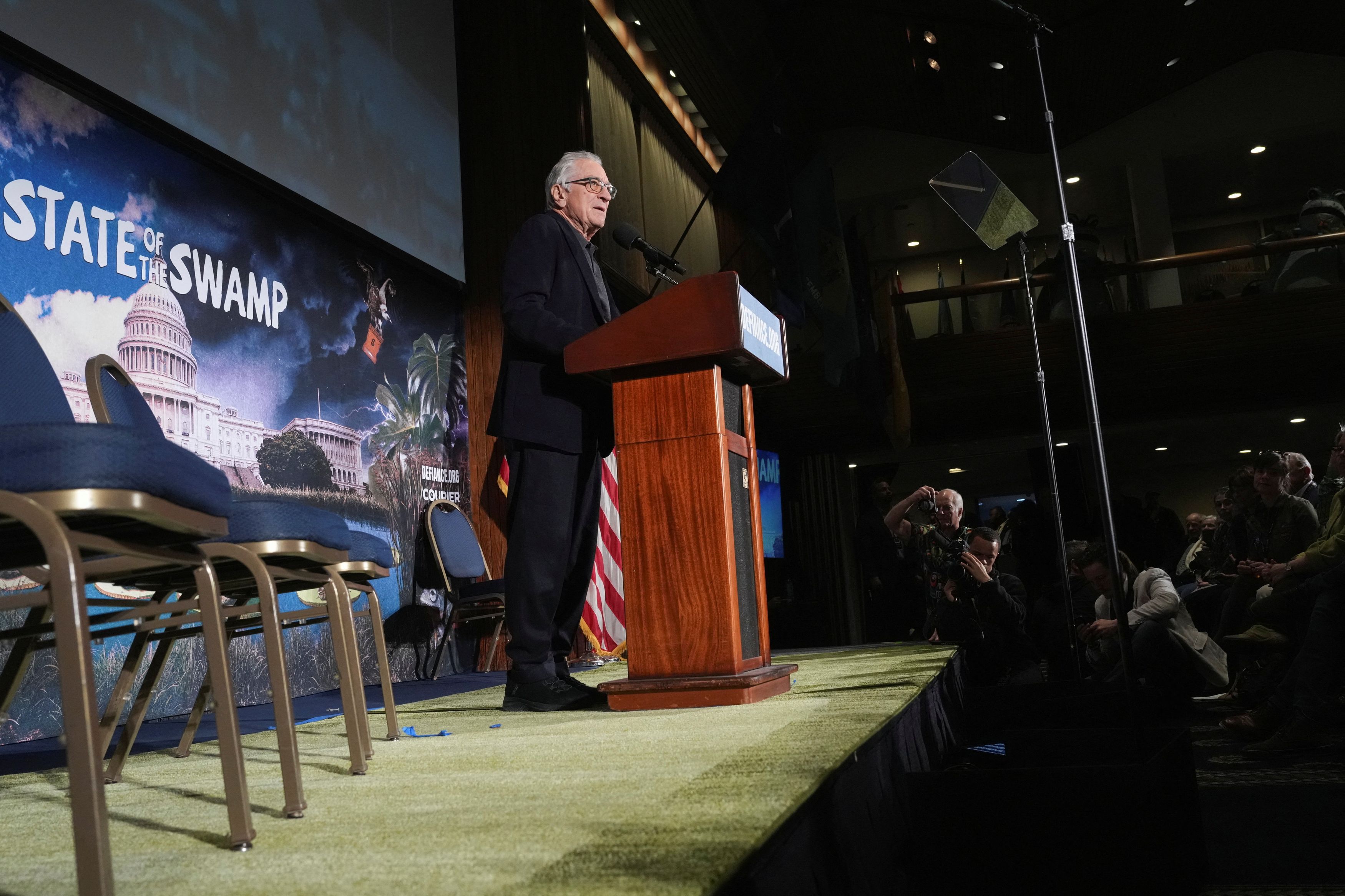 Ο ηθοποιός Ρόμπερτ Ντε Νίρο μιλάει κατά τη διάρκεια του «State of the Swamp», που διοργάνωσε το Δημοκρατικό Κόμμα κατά τη διάρκεια της ομιλίας του Προέδρου Ντόναλντ Τραμπ για την κατάσταση της Ένωσης στο National Press Club στην Ουάσινγκτον, στις 24 Φεβρουαρίου 2026. REUTERS/Leah Millis