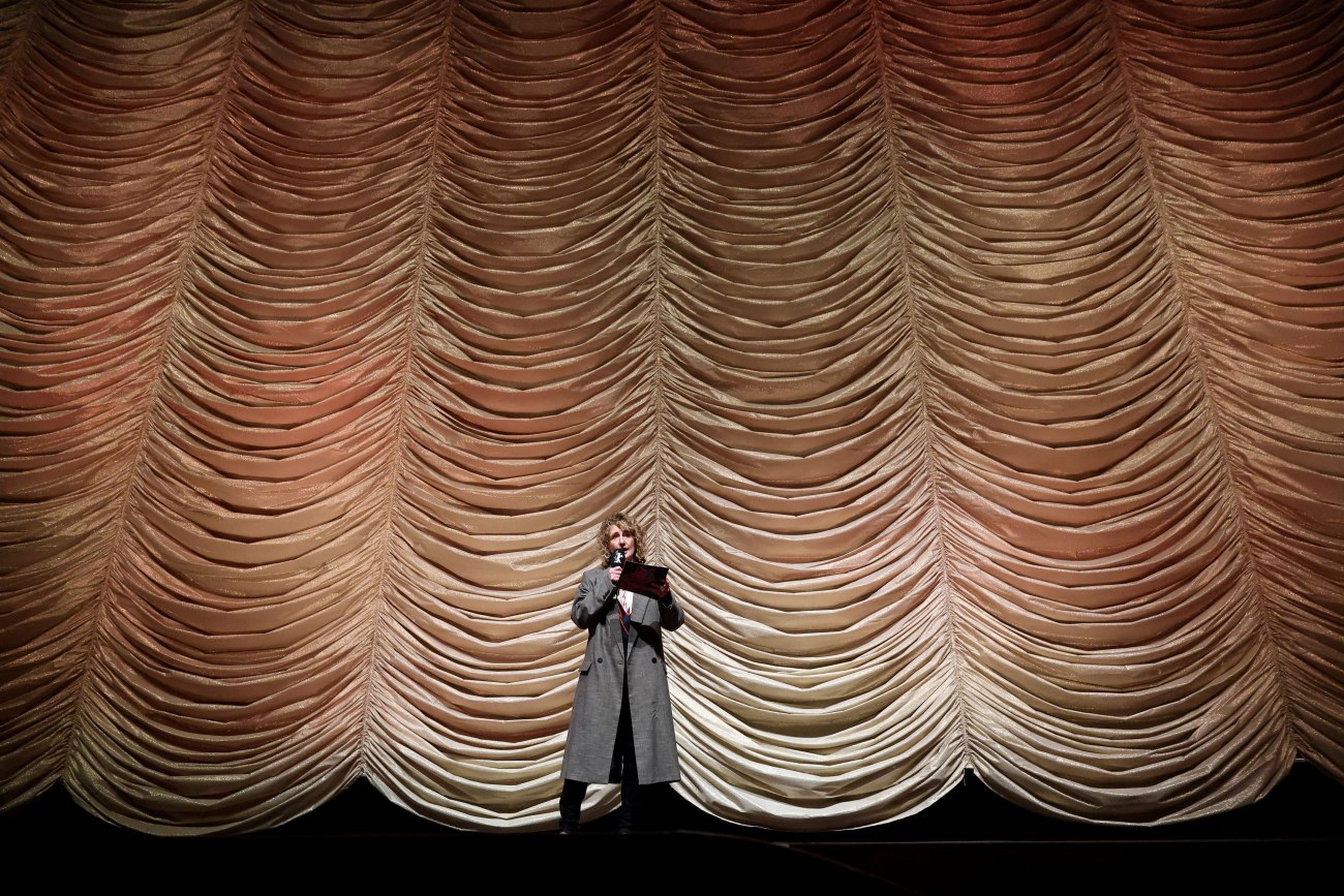 Η διευθύντρια του Φεστιβάλ Κινηματογράφου του Βερολίνου, Τρίσια Τατλ, μιλά στη σκηνή κατά τη διάρκεια της τελετής απονομής βραβείων του 76ου Διεθνούς Φεστιβάλ Κινηματογράφου του Βερολίνου, στο Βερολίνο, Γερμανία, 21 Φεβρουαρίου 2026. REUTERS/Axel Schmidt