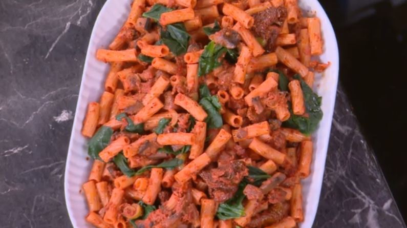 Συνταγή: Ριγκατόνι με πέστο λιαστής ντομάτας και μανιτάρια