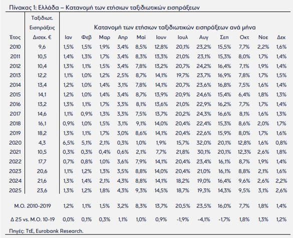 Οι εισπράξεις που έφερε ο τουρισμός το 2025 ενίσχυσαν ενισχύοντας το εισόδημα και τις θέσεις εργασίας της ελληνικής οικονομίας - Η ανάλυση της Eurobank
