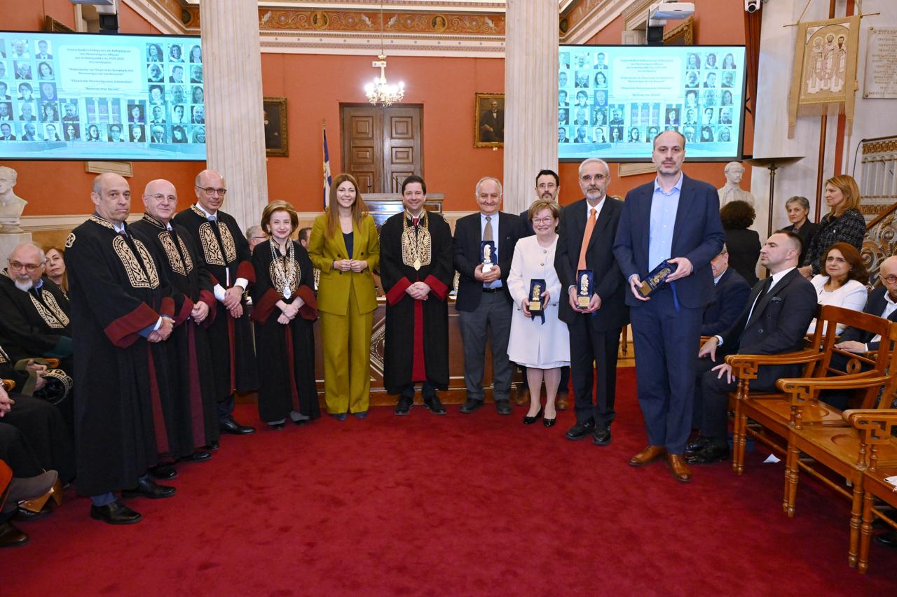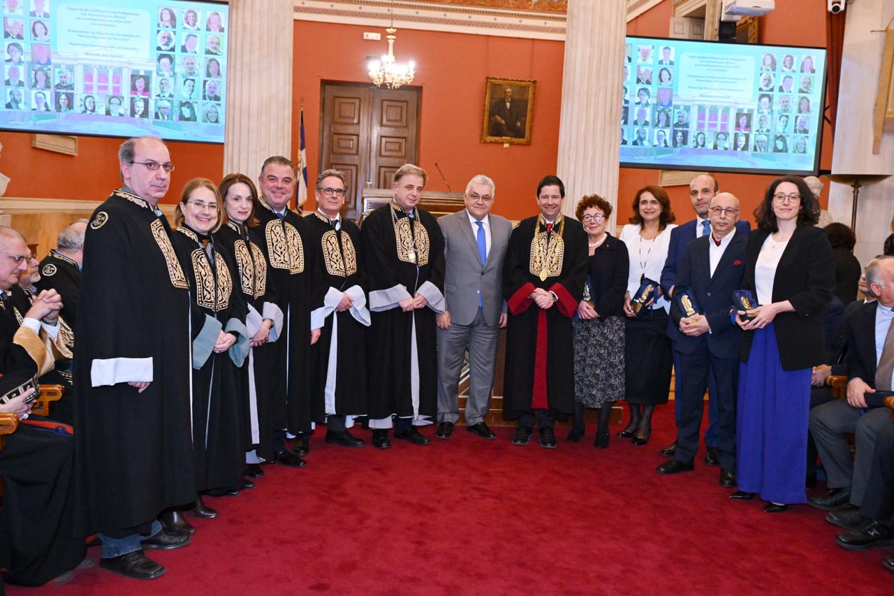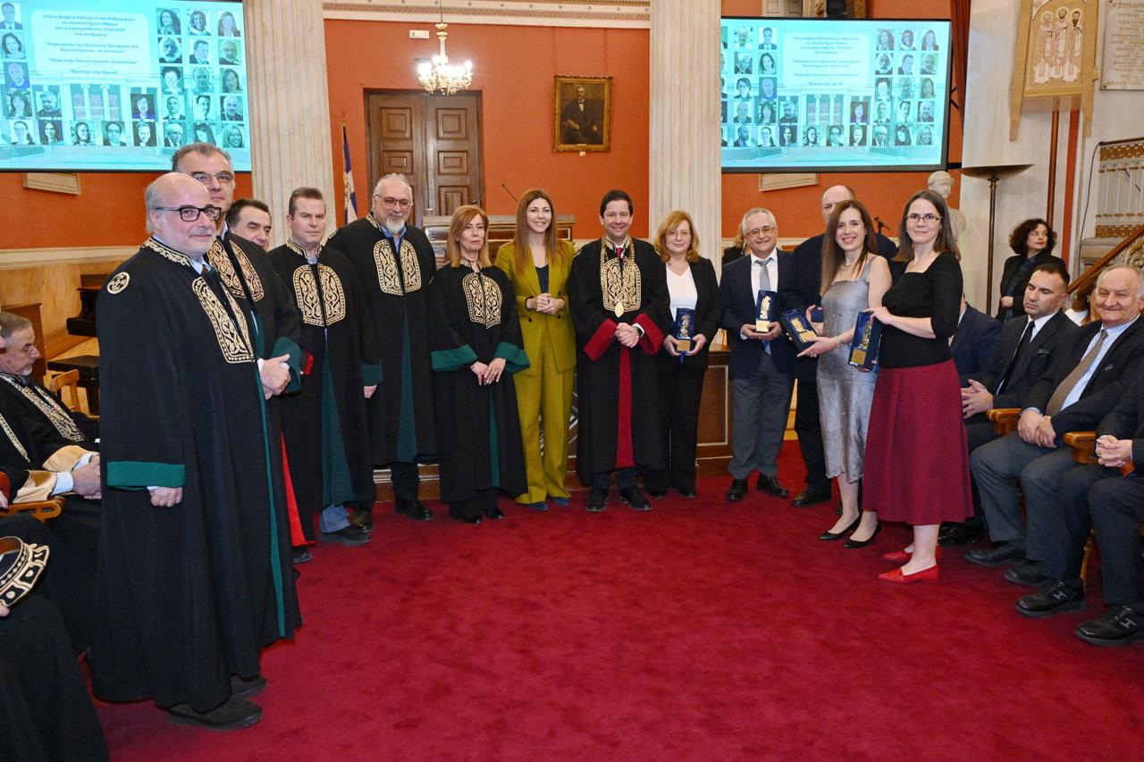 Πραγματοποιήθηκε την Τετάρτη 25 Φεβρουαρίου 2026 στις 18.00 στην κατάμεστη Μεγάλη Αίθουσα του Πανεπιστημίου Αθηνών η καθιερωμένη πλέον και ιδιαιτέρως συμβολική Τελετή Απονομής των Ετήσιων Βραβείων για το ακαδημαϊκό έτος 2024-2025 στις κατηγορίες: