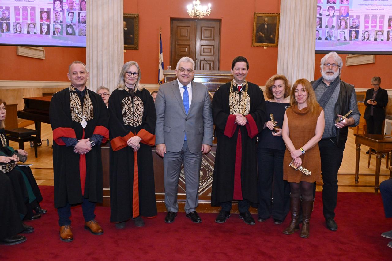 Με τη σημερινή βραβευση αναγνωρίζουμε όσους καινοτομούν και τολμούν με έρευνα αιχμής να χαράξουν νέες πορείες στη γνώση, όσους με επιμονή φωτίζουν τις σύγχρονες προκλήσεις διαμορφώνοντας νέα δεδομένα και νέους ορίζοντες στο Δημόσιο Πανεπιστήμιο, στη χώρα και στην ανθρωπότητα.