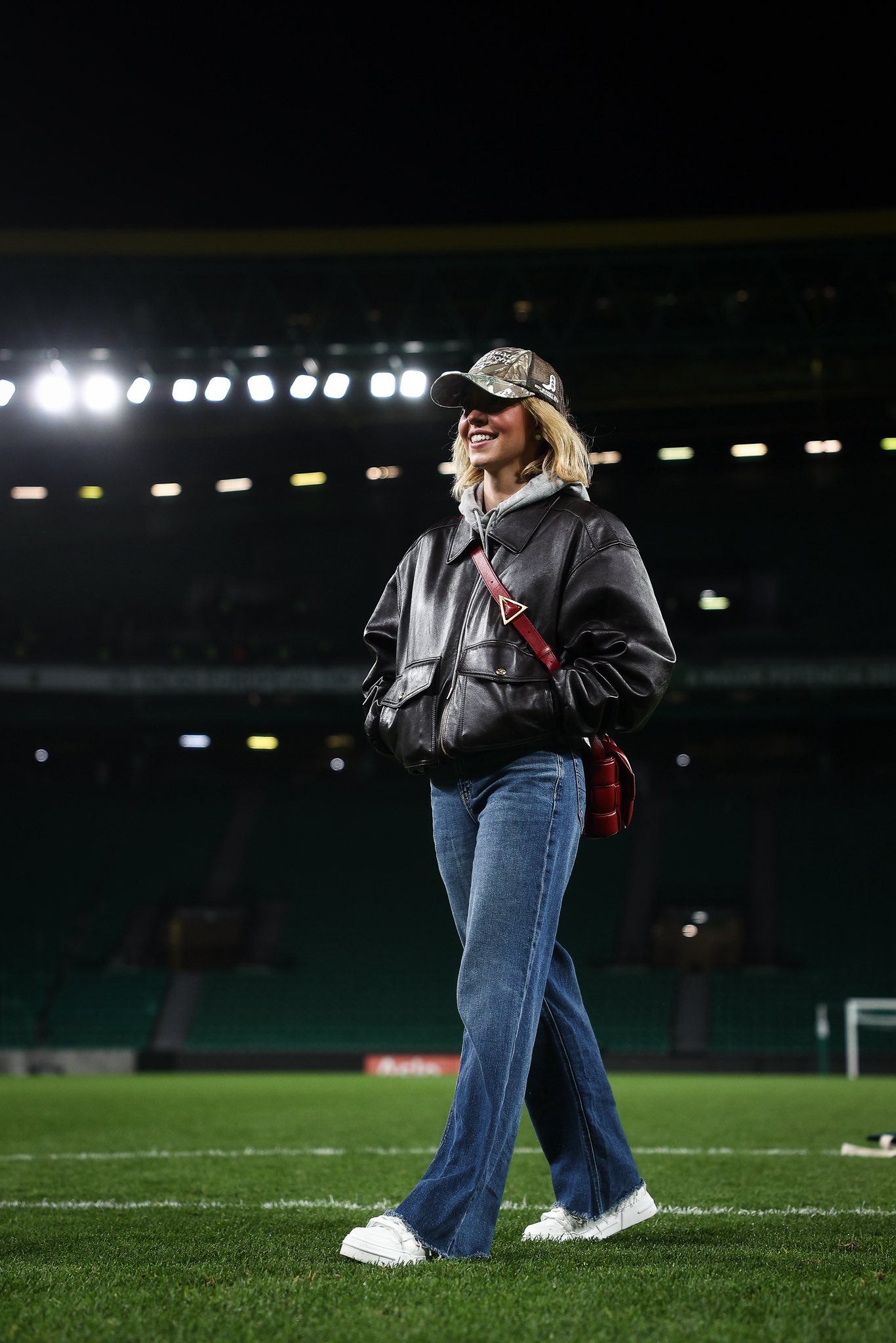 Η ηθοποιός, η οποία φορούσε ένα καπέλο, συνοδευόταν από τους Λίο Γούντολ και Μάθιου Γκουντ, επίσης ηθοποιούς. Σε βίντεο που υπάρχει στα social media η γνωστή ηθοποιός κατέβηκε μετά το τέλος του ματς στον αγωνιστικό χώρο και έπαιξε λίγο με την μπάλα με αντίπαλο τη μασκότ και όχι μόνο, δείχνοντας ότι αν και αμερικανή γνωρίζει κάτι από ποδόσφαιρο.