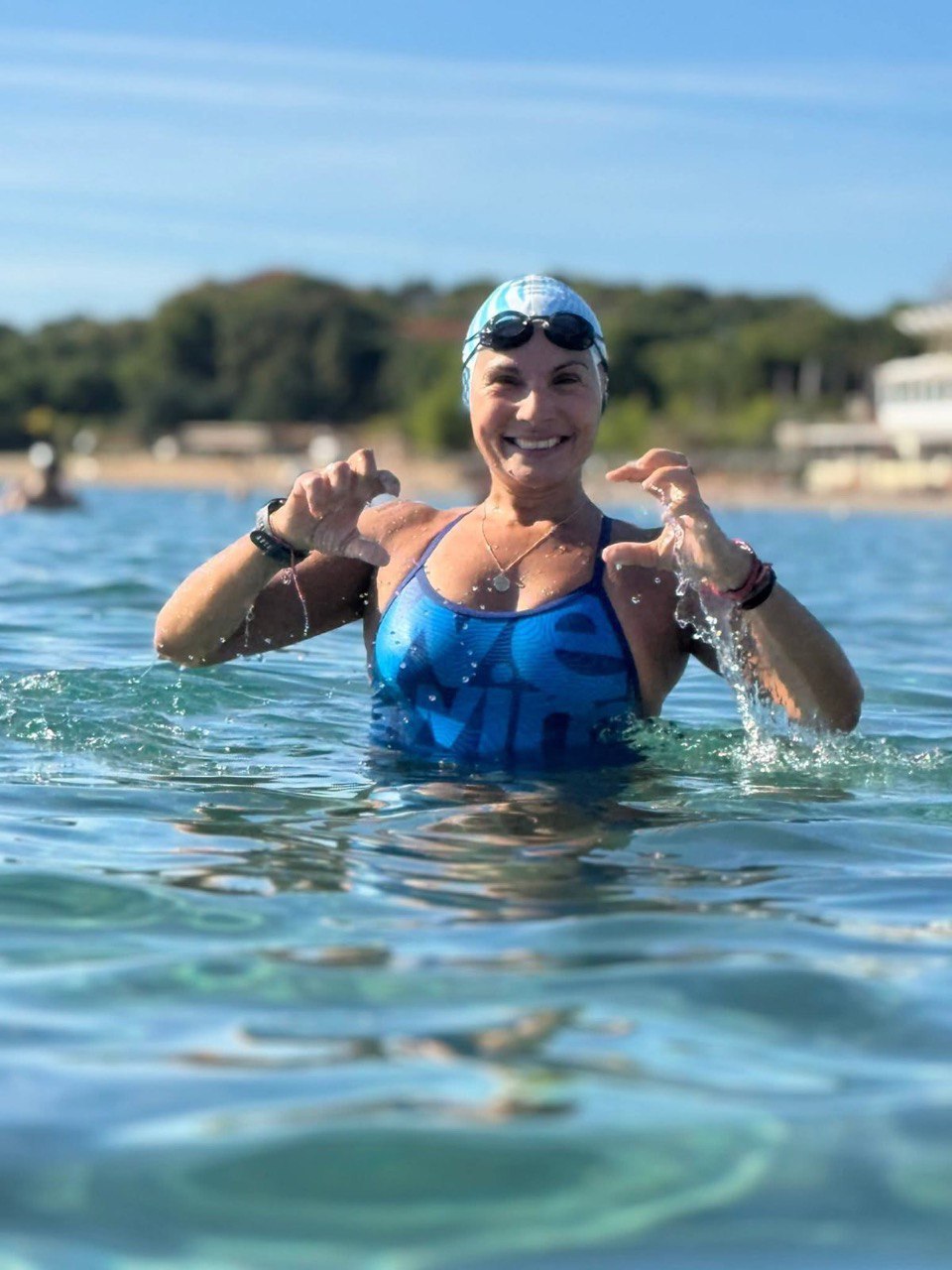 Όσο θυμάμαι τον εαυτό μου, κολυμπούσα. Τη θάλασσα την αγαπώ. Η σχέση μου με το θαλασσινό νερό είναι «ερωτική». Ήθελα εκτός από το καλοκαίρι να δοκιμάσω και το χειμώνα. Ήθελα να το μοιραστώ με τον άντρα μου και να το κάνουμε μαζί. Τον μύησα και εκείνον στην χειμερινή κολύμβηση στην αρχή και οι δύο διστακτικά και τώρα πλέον δεν μπορούμε να φανταστούμε τη ζωή μας χωρίς αυτό. Για μένα δεν ήταν δύσκολο. Κάθε μέρα κολυμπάω από 30 – 45 λεπτά. Όποιος θέλει να ξεκινήσει χειμερινή κολύμβηση πρέπει να έχει δουλέψει με τον εαυτό του. Γιατί η πρόκληση είναι να υποτάξεις τον εαυτό σου και να ξεπεράσεις τα όριά σου. Ο εξοπλισμός είναι απλός. Χρειαζόμαστε απαραίτητα σημαδούρα για την ασφάλειά μας, μαγιό, σκουφάκι και γυαλιά. Και φυσικά μετά πρέπει να έχουμε μαζί μας ζεστά ρούχα για να τα φορέσουμε. Την ώρα που κολυμπάω γίνομαι «ένα» με το νερό. Η θάλασσα αν την αγαπάς σε «δέχεται» κι αυτή και σε λυτρώνει. Υπάρχουν φορές που μόλις τελειώνω νιώθω σαν να έχω κάνει δέκα ενέσεις αδρεναλίνης. Νιώθεις ότι μπ0ορείς να κατακτήσεις τον κόσμο. Πολλές φορές νιώθω πως θέλω να βγω στο δρόμο και να τους πω «ελάτε να κολυμπήσουμε μαζί!». Σε όποιον το σκέφτεται και θέλει να ξεκινήσει τον συμβουλεύω να μην κολλήσει στα τετριμμένα και να ξε – βολευτεί. Μην κοιτάτε τη θερμοκρασία και την ημερομηνία στο ημερολόγιο. Τολμήστε το! Δεν υπάρχει ούτε ηλικία στην χειμερινή κολύμβηση, μόνο καρδιά ψυχή και αγάπη για τη θάλασσα. Άτομα που έφερα στην ομάδα με ευγνωμονούν που τους μύησα. Η κοινότητά μας είναι ελεύθερη: κανείς δεν νοιάζεται για το αν κολυμπάς γρήγορα ή αργά, ή αν είσαι αδύνατος ή πιο εύσωμος. Ο καθένας κάνει αυτό που τον κάνει ευτυχισμένο. Ταυτόχρονα κάνουμε και την ψυχοθεραπεία μας. Εγώ αν έχω ένα πρόβλημα, πηγαίνω στη θάλασσα και κολυμπάω και με κάποιο τρόπο βρίσκω τη λύση.