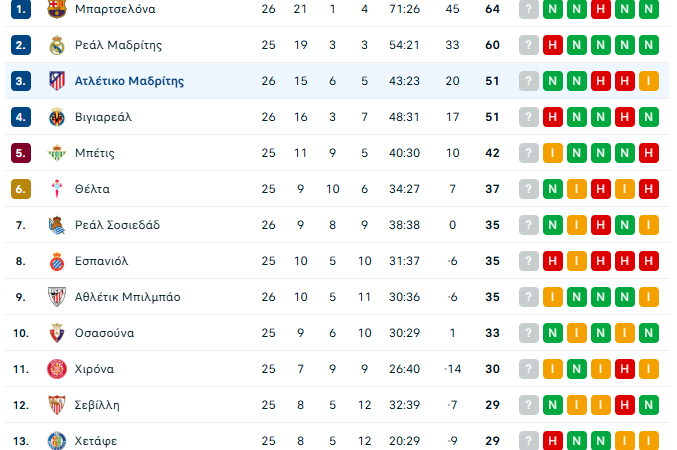 Αναλυτικά, τα αποτελέσματα και το υπόλοιπο πρόγραμμα της 26ης αγωνιστικής της La Liga: