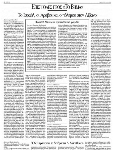 Επιστολή που είχε δημοσιευτεί στην εφημερίδα «Το Βήμα» το Σάββατο 19 Αυγούστου 2006.