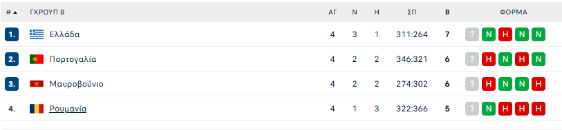 Ρουμανία – Πορτογαλία 101-96 Μαυροβούνιο – Ελλάδα 65-79