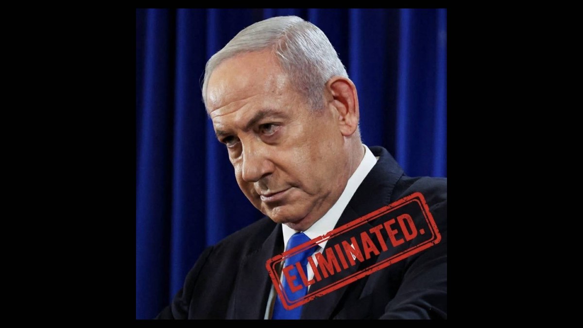 Και έχει αναρτήσει μια φωτογραφία του Ισραηλινού πρωθυπουργού όπου υπάρχει μια «σφραγίδα» που γράφει: «Εξολοθρεύτηκε».