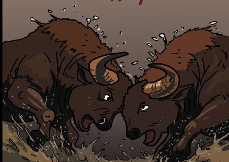 Ο Αρκάς μαζί με τη σημερινή καλημέρα του δείχνει ένα σκίτσο με δύο ταύρους να παλεύουν και από κάτω τους ένας βάτραχος γελώντας να λέει: