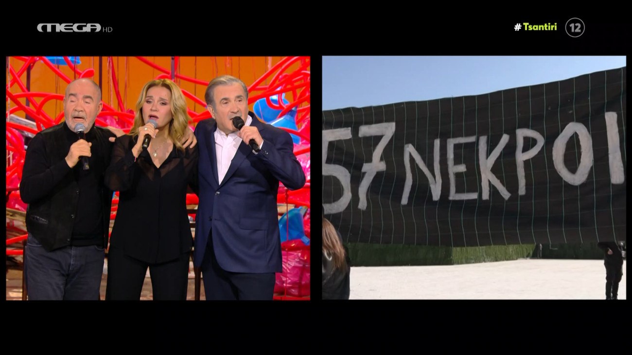 Η εκπομπή ολοκληρώθηκε με την Μπεσσυ Μάλφα, τον Χρήστο Στέργιογλου και τον Λάκη Λαζόπουλο να ερμηνεύουν το τραγούδι «Το Παράπονο» και δίπλα έπαιζε ένα συγκλονιστικό βίντεο για την τραγωδία των Τέμπων.