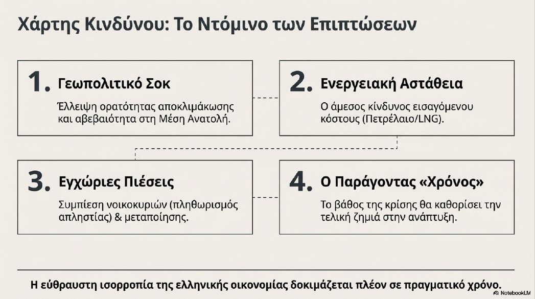 Η κλιμάκωση της πολεμικής κρίσης στη Μέση Ανατολή και η ένταση γύρω από τον Περσικό Κόλπο δημιουργούν ένα σύνθετο οικονομικό περιβάλλον και για την Ελλάδα