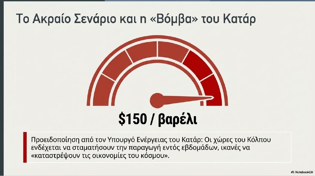 Τα μηνύματα είναι δυσοίωνα. Ο πόλεμος στη Μέση Ανατολή θα μπορούσε να «καταστρέψει τις οικονομίες του κόσμου», προειδοποίησε ο υπουργός Ενέργειας του Κατάρ, ο οποίος έριξε… «βόμβα» μεγατόνων προβλέποντας ότι όλες οι χώρες του Κόλπου που εξάγουν ενέργεια θα σταματήσουν την παραγωγή εντός εβδομάδων και θα εκτοξεύσουν την τιμή του πετρελαίου στα 150 δολάρια το βαρέλι.