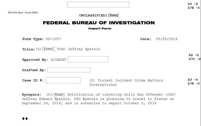 Τα έγγραφα δείχνουν επίσης ότι οι αμερικανικές αρχές παρακολουθούσαν τις διεθνείς μετακινήσεις του Έπσταϊν.