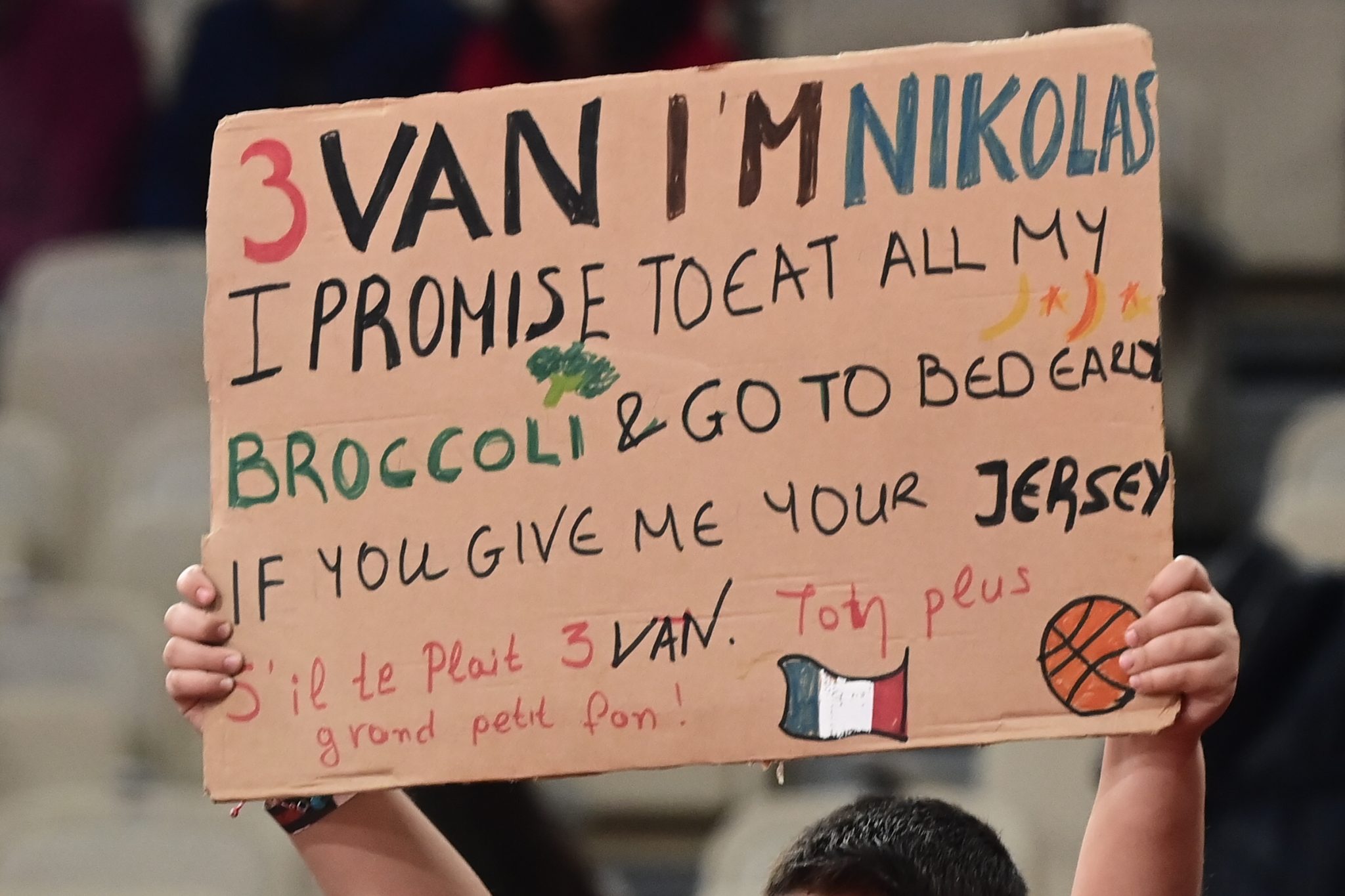 Συγκεκριμένα το πλακάτ έγραφε: «Εβάν, είμαι ο Νικόλας. Υπόσχομαι να τρώω όλο το μπρόκολό μου και να πηγαίνω νωρίς για ύπνο αν μου δώσεις τη φανέλα σου».