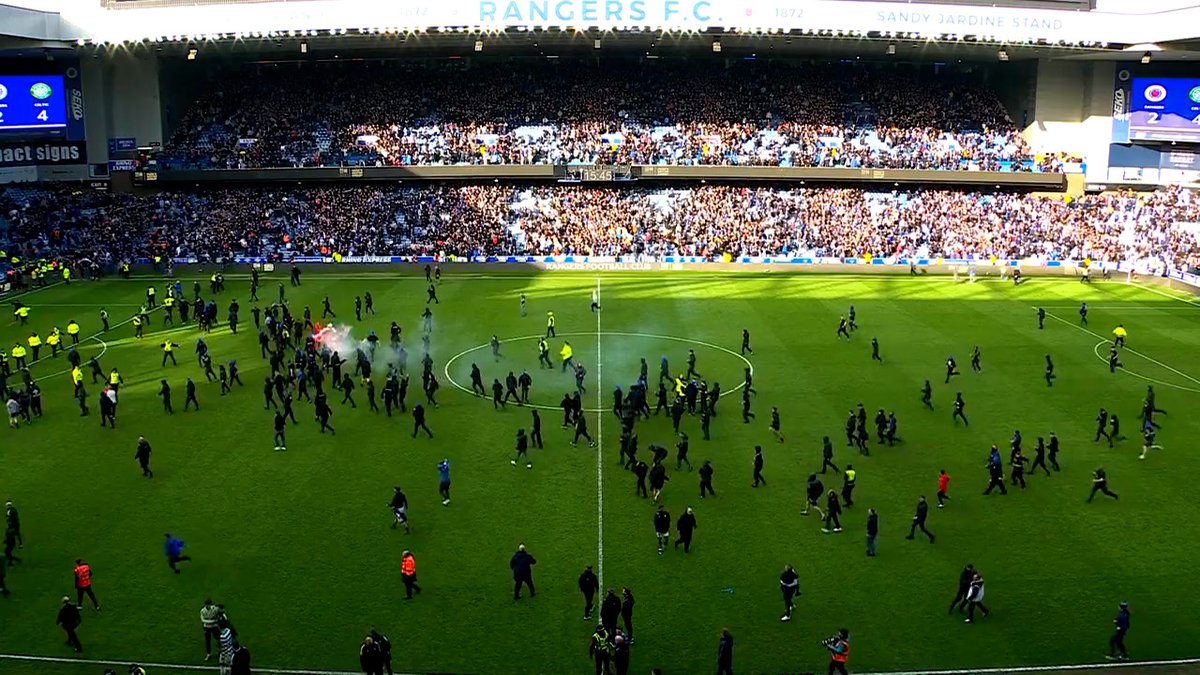 Συγκεκριμένα, αμέσως μετά το νικητήριο πέναλτι στη Σέλτικ, οπαδοί της Ρέιντζερς μπήκαν στον αγωνιστικό χώρο και κατευθύνθηκαν προς την κερκίδα που ήταν εκείνοι των φιλοξενούμενων. Οι οπαδοί της Σέλτικ δεν έμειναν με σταυρωμένα τα χέρια καθώς εισέβαλλαν και αυτοί στον αγωνιστικό χώρο ο οποίος μετατράπηκε σε πεδίο μάχης.