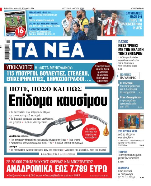 Στα «ΝΕΑ» της Δευτέρας: Επίδομα καυσίμου
