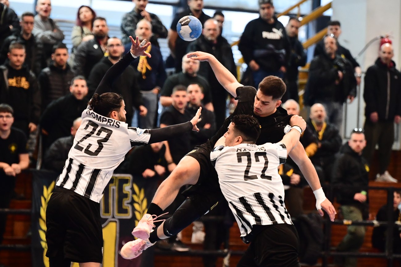 Η ΑΕΚ είχε το προβάδισμα στο μεγαλύτερο μέρος του αγώνα αλλά ο ΠΑΟΚ με αντεπιθέσεις διαρκείας κατάφερε να ισοφαρίζει, όπως όταν προηγήθηκε 7-3 στο πρώτο μέρος, αλλά το ημίχρονο τελείωσε 13-13. Στο δεύτερο μέρος οι γηπεδούχοι προηγήθηκαν 16-13 αλλά και πάλι ο Δικέφαλος του Βορρά έφερε το ματς στα ίσια. Ο αρχηγός της ΑΕΚ, Βαγγέλης Αραμπατζής, με γκολ στο τελευταίο δίλεπτο έκανε το 28-26 ενώ ο Νικολαΐδης από πλευράς ΠΑΟΚ μείωσε σε 28-27 στα τελευταία 30 δευτερόλεπτα.