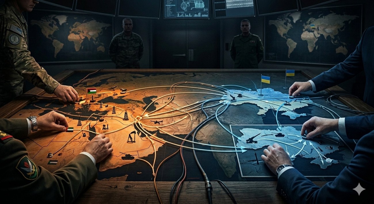 Ενώ η κοινή γνώμη τείνει να αντιμετωπίζει τον πόλεμο στην Ουκρανία και την κλιμάκωση στη Μέση Ανατολή ως δύο διακριτές εστίες έντασης, μια βαθύτερη στρατηγική ανάλυση αποκαλύπτει έναν ισχυρό οργανικό δεσμό.
