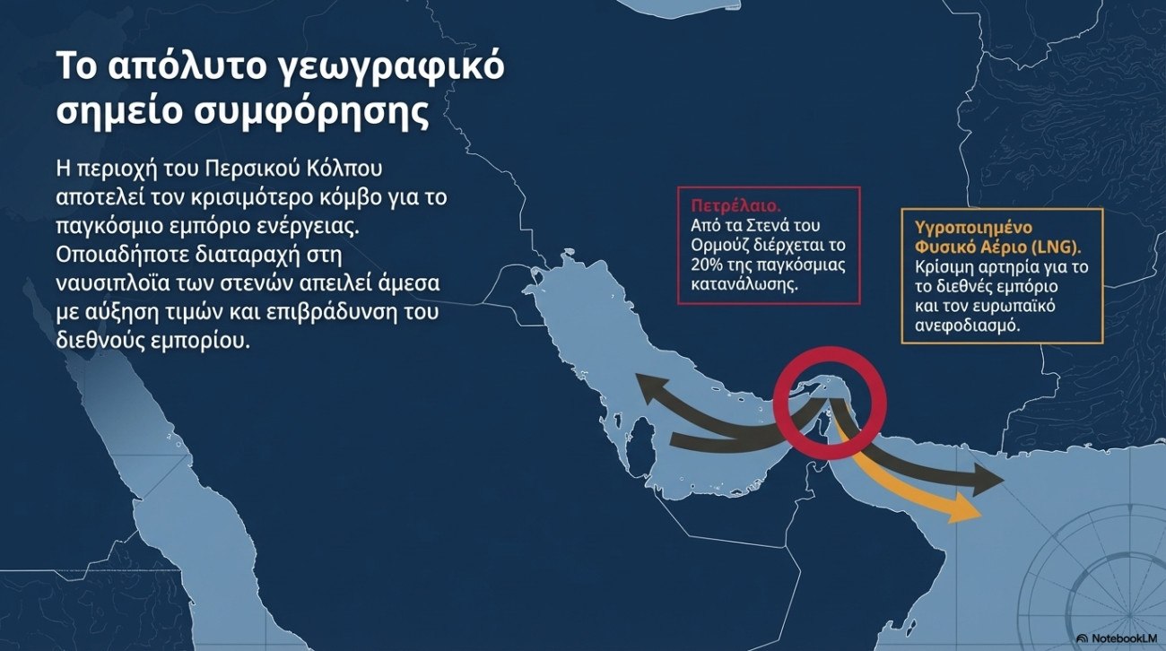 Και τούτο διότι, η περιοχή του Περσικού Κόλπου αποτελεί κρίσιμο κόμβο για το παγκόσμιο εμπόριο ενέργειας, καθώς από τα Στενά του Ορμούζ διέρχεται περίπου το 20% της παγκόσμιας κατανάλωσης πετρελαίου και μεγάλο μέρος του διεθνούς εμπορίου υγροποιημένου φυσικού αερίου (LNG). Οποιαδήποτε διαταραχή στη ναυσιπλοΐα της περιοχής μπορεί να οδηγήσει σε αύξηση των τιμών ενέργειας, αύξηση του κόστους μεταφοράς και επιβράδυνση του διεθνούς εμπορίου.
